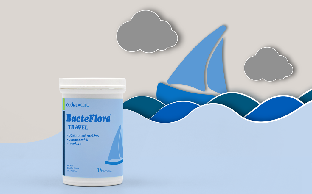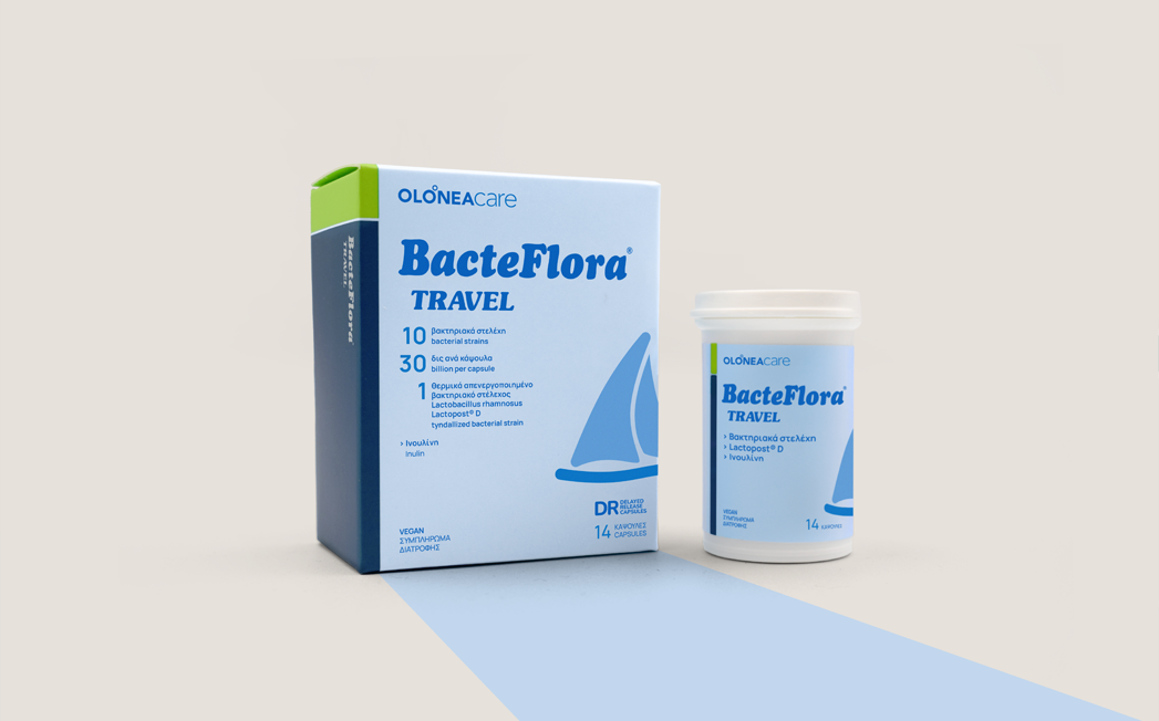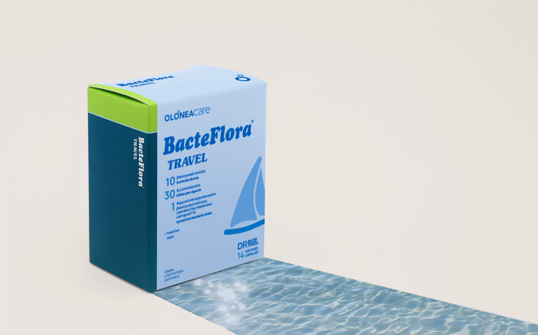 A combination of 10 bacterial strains providing 30 billion CFU per capsule, prebiotic inulin, and Lactopost® D, a postbiotic, heat-inactivated Lactobacillus rhamnosus strain. It helps balance the gut microbiome and contributes to protection against diarrhea when travelling, especially in situations where foodborne infections are more common.